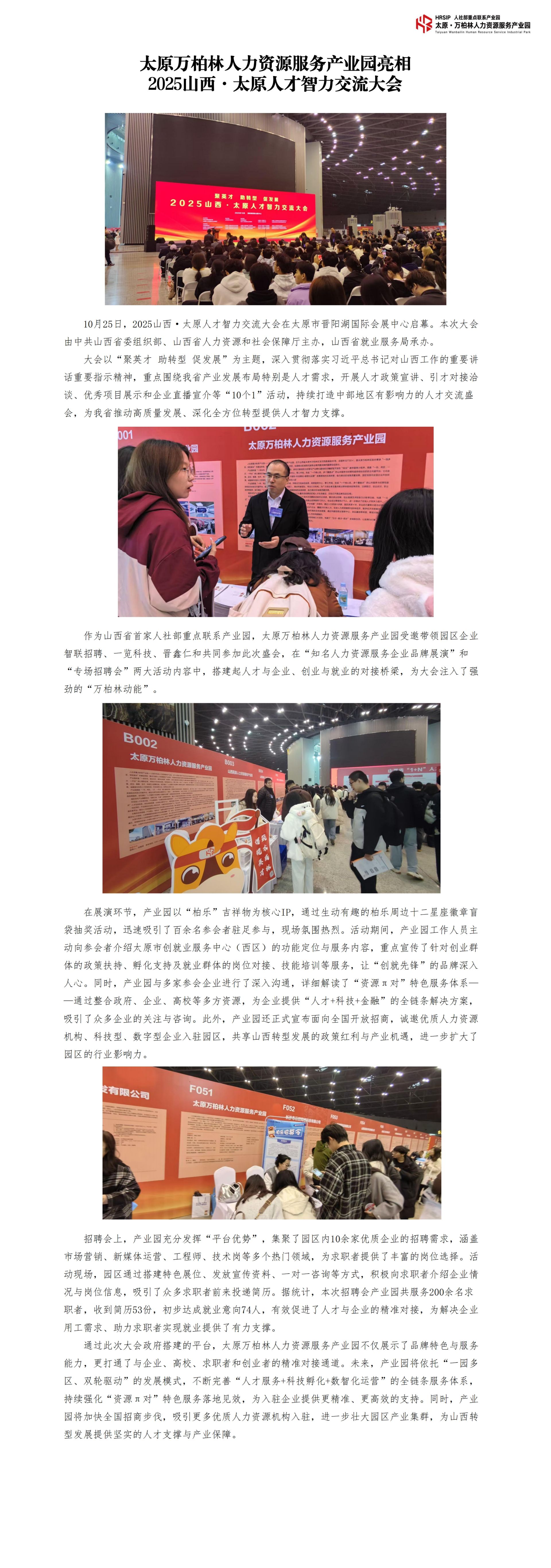 太原万柏林人力资源服务产业园亮相2025山西·太原人才智力交流大会
