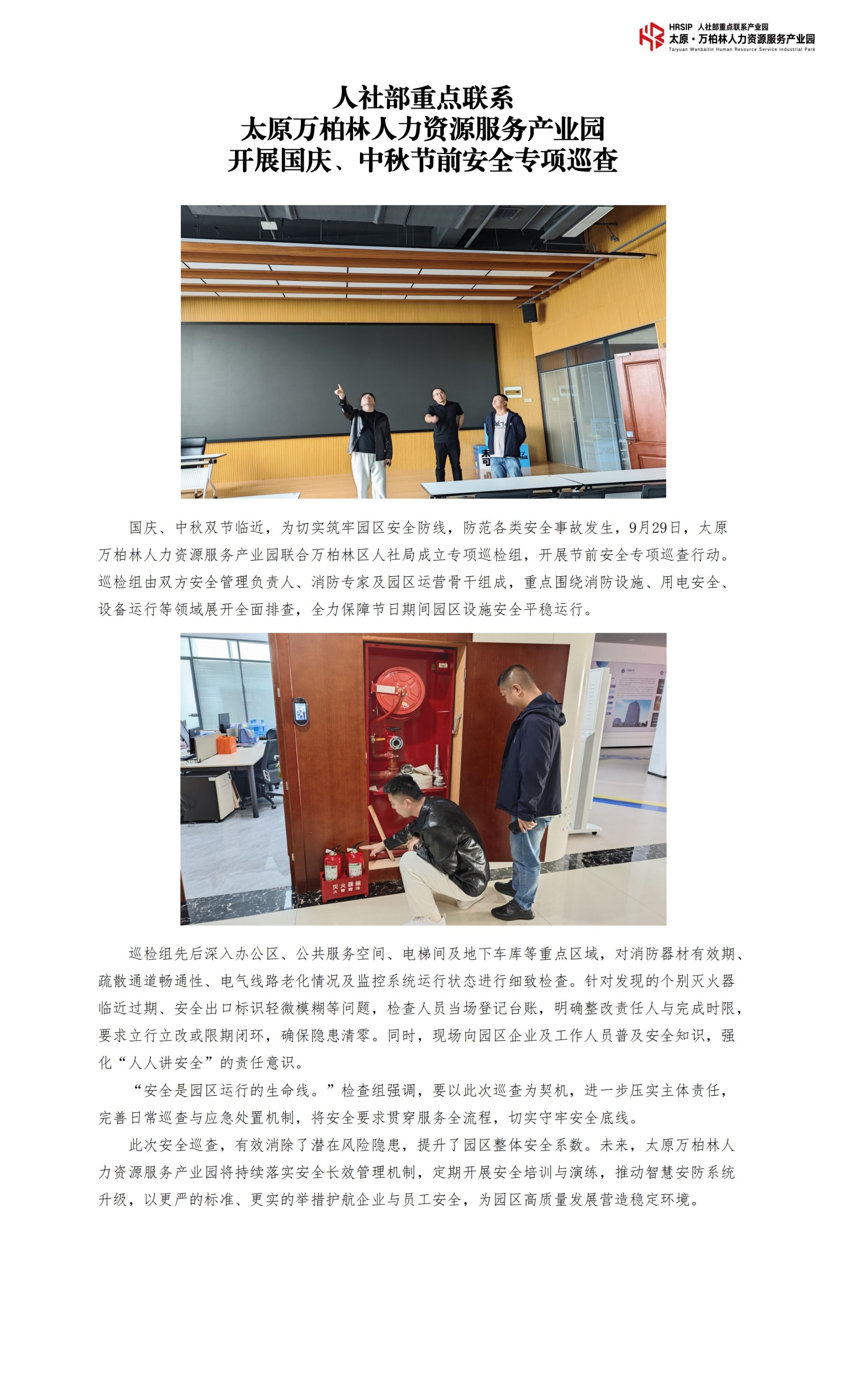 人社部重点联系•太原万柏林人力资源服务产业园开展国庆、中秋节前安全专项巡查