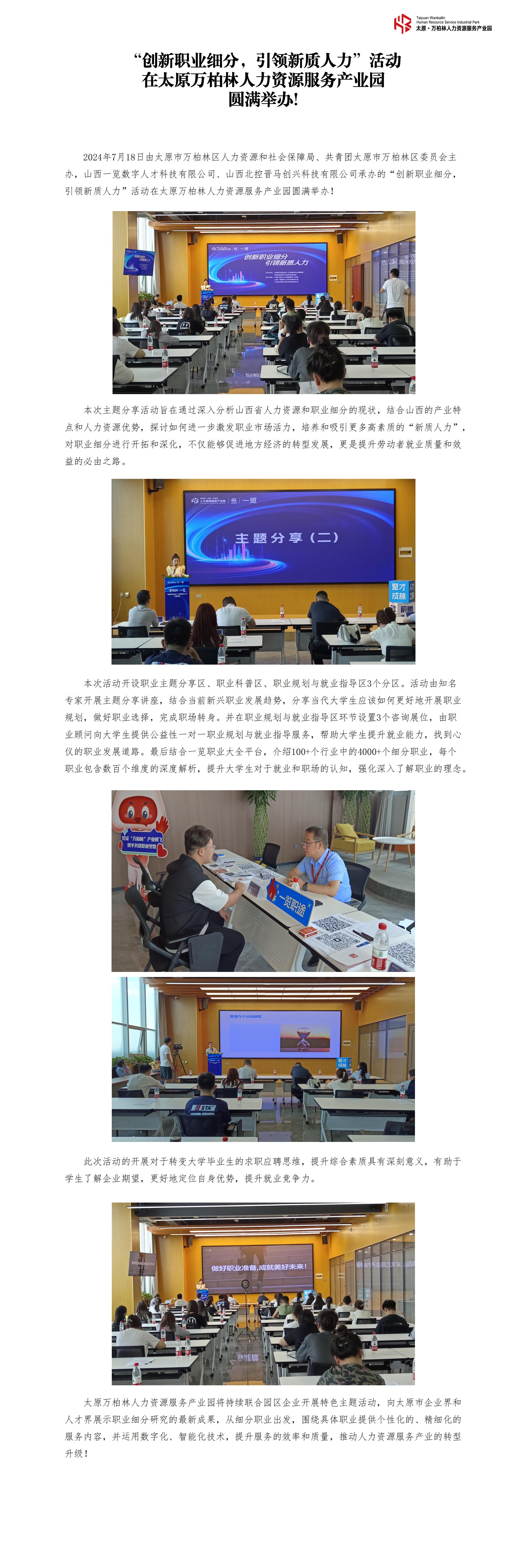 “创新职业细分,引领新质人力”活动在太原万柏林人力资源服务产业园圆满举办
