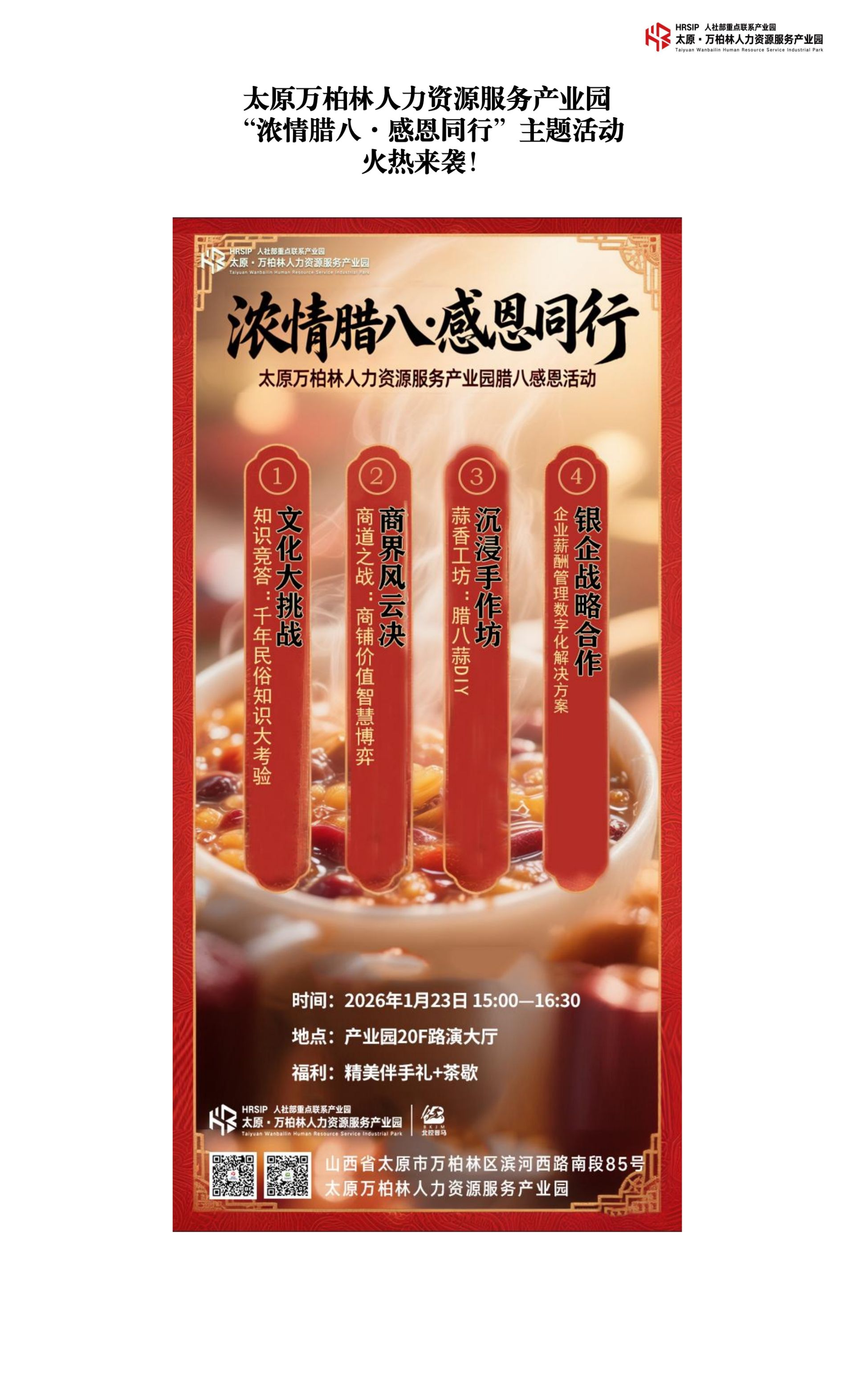 太原万柏林人力资源服务产业园“浓情腊八·感恩同行”主题活动火热来袭!