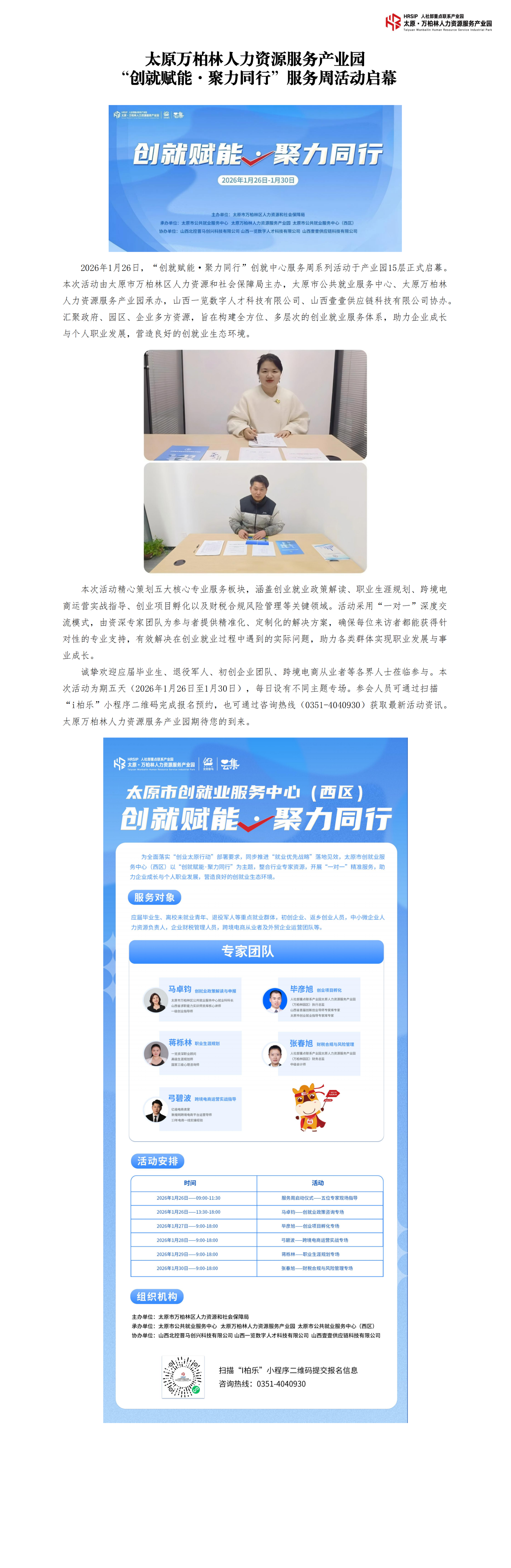 太原万柏林人力资源服务产业园“创就赋能·聚力同行”服务周活动启幕