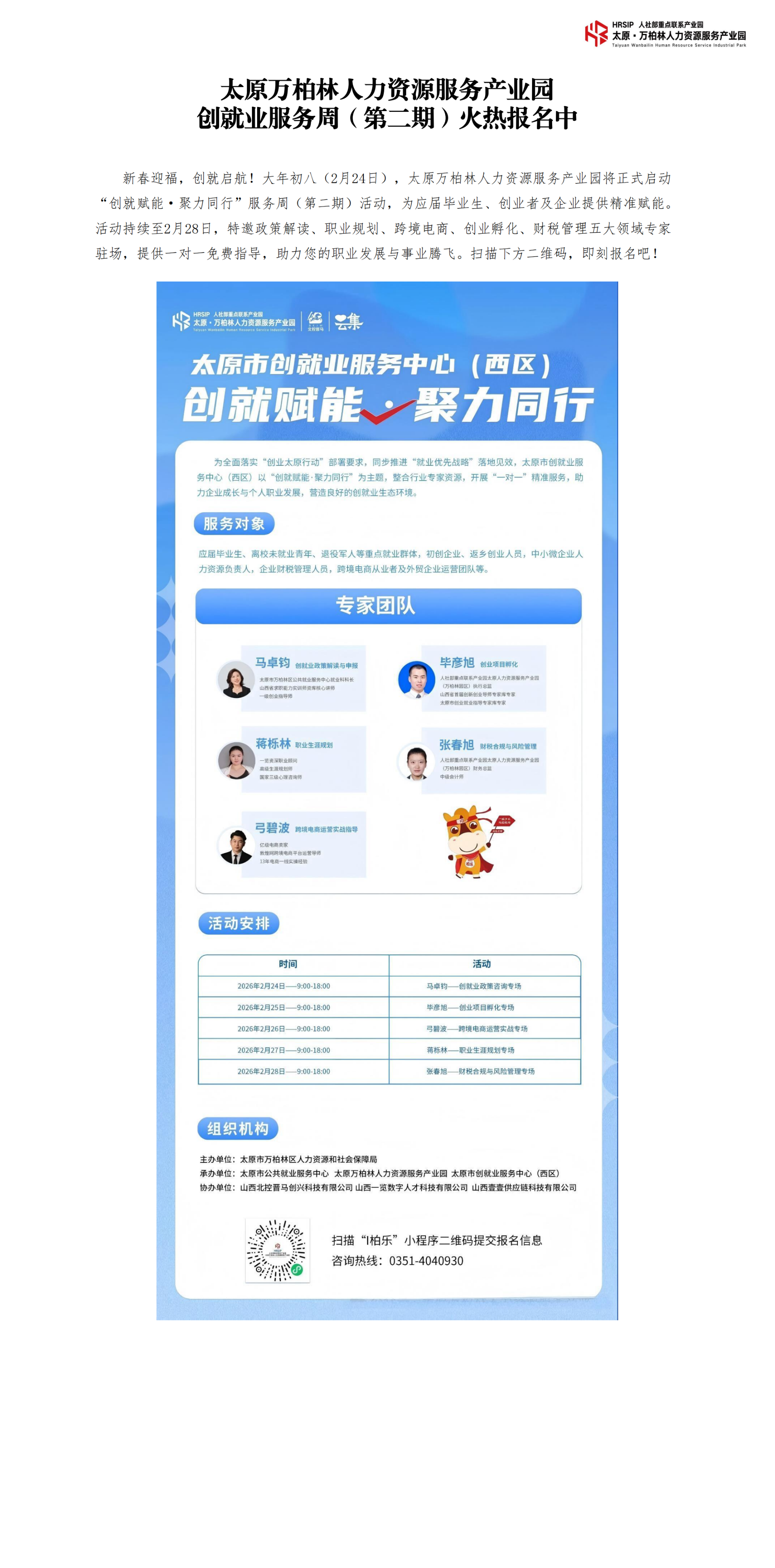 正月初八•聚势赋能 | 太原万柏林人力资源服务产业园创就业服务周(第二期)火热报名中