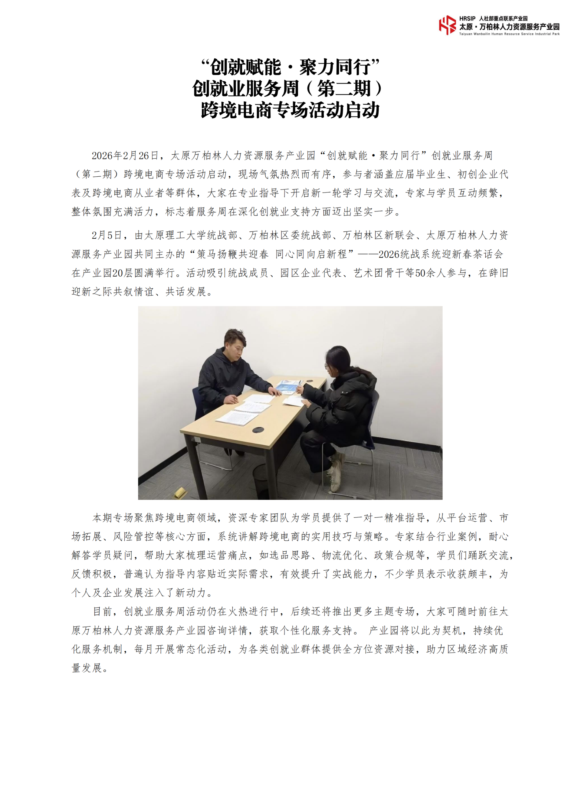 正月初八•聚势赋能 | 太原万柏林人力资源服务产业园创就业服务周(第二期)火热报名中