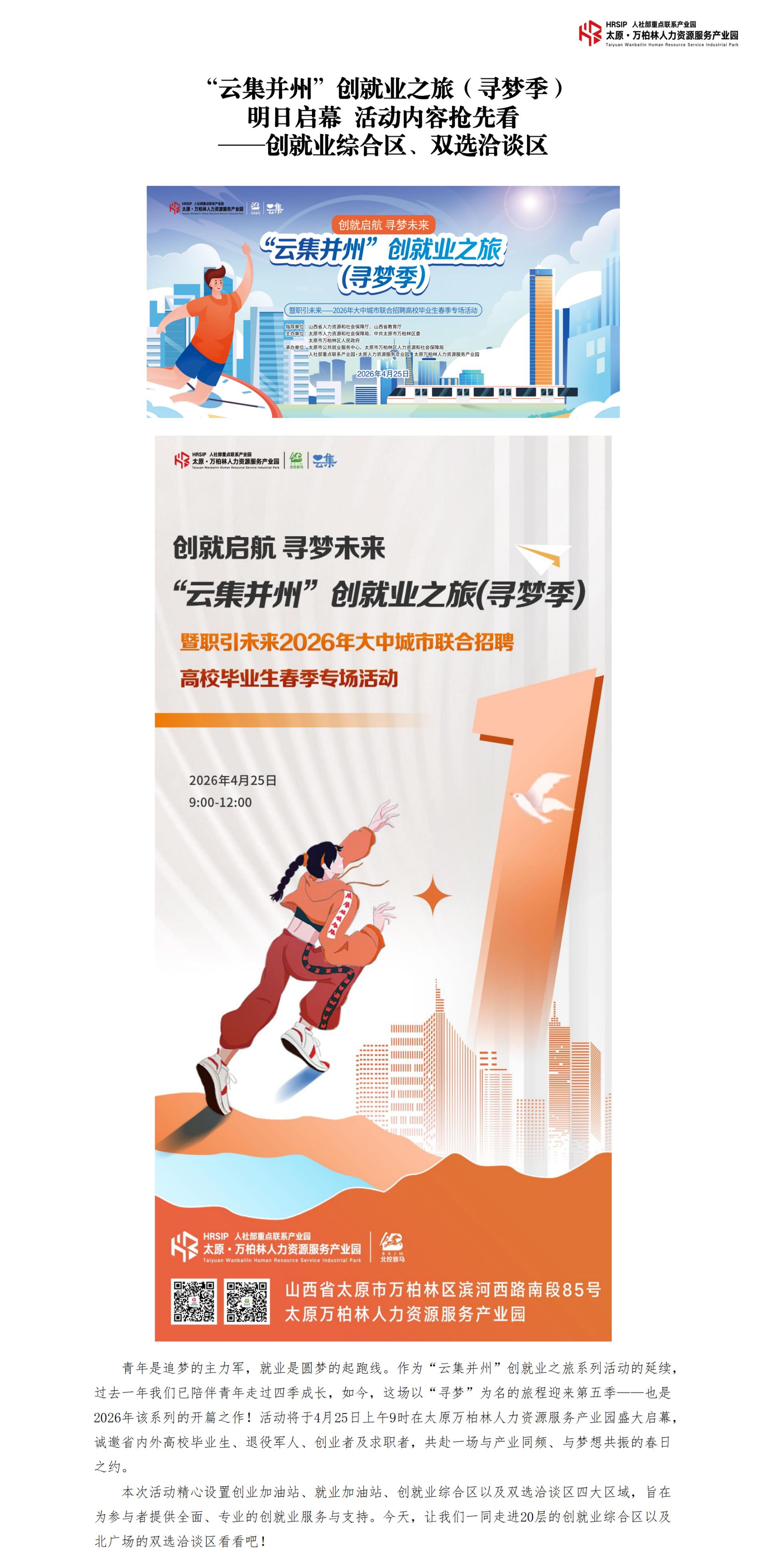 “云集并州”创就业之旅(寻梦季)明日启幕 活动内容抢先看——创就业综合区、双选洽谈区