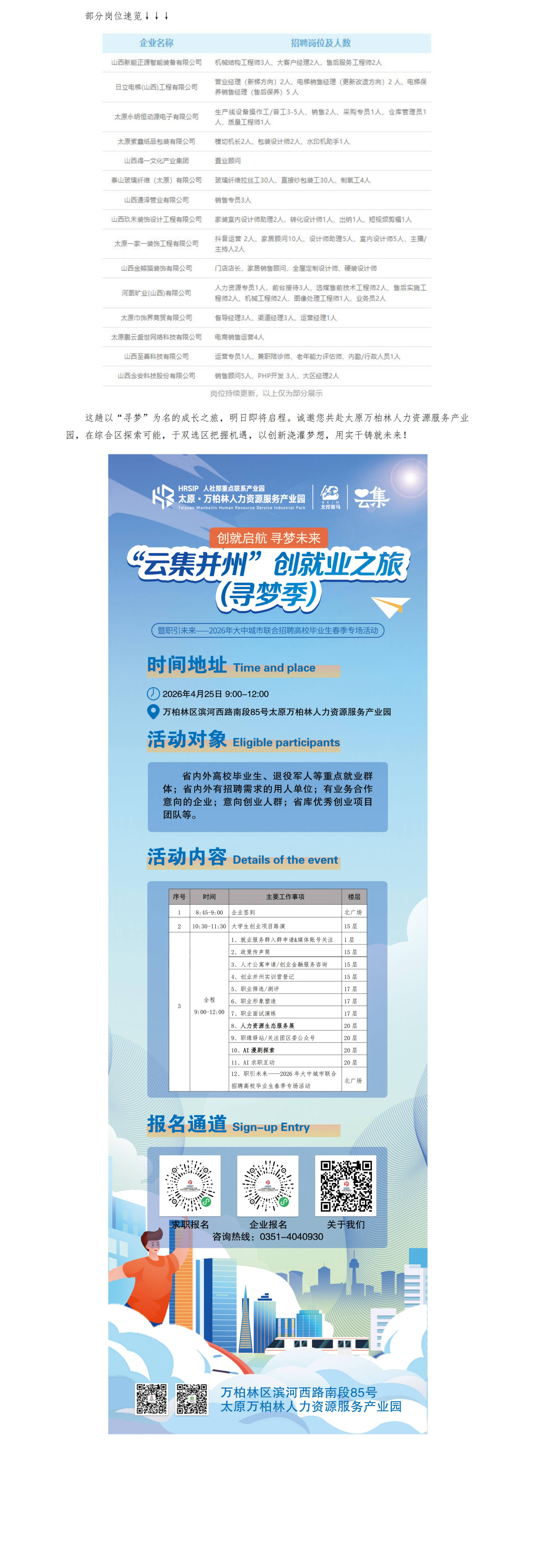 “云集并州”创就业之旅(寻梦季)活动内容抢先看——就业加油站